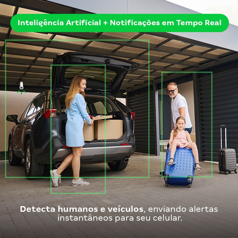 A iM6 Full Color conta com inteligência artificial, que detecta e diferencia a presença de humanos e veículos e envia notificações em tempo real sempre que houver uma detecção.