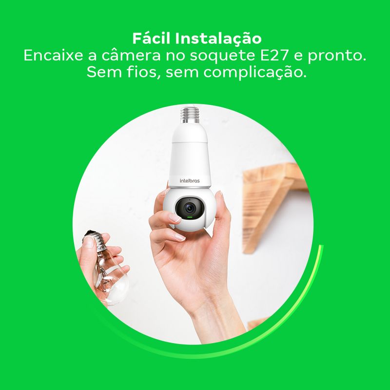 Instalação rápida e prática! Instale a câmera em um soquete¹ E27. Configure no aplicativo Mibo Smart e pronto, sua câmera já estará pronta para uso. ¹O modelo admite tensão de alimentação de 100 a 240V. É necessário ter atenção com o interruptor que comandará a câmera lâmpada, caso não seja um interruptor inteligente, ele desligará o produto.