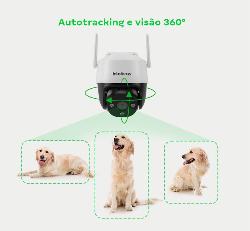 A câmera conta com microfone e alto-falante internos que possibilitam o recurso de interação por voz. Assim, além de ver, é possível ouvir e falar com quem está no ambiente monitorado.