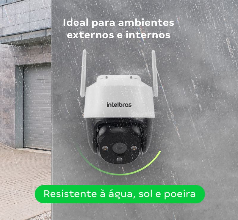 A câmera conta com proteção contra chuva e poeira, para que você tenha um monitoramento de qualidade e em todas as ocasiões, faça chuva ou faça sol.
