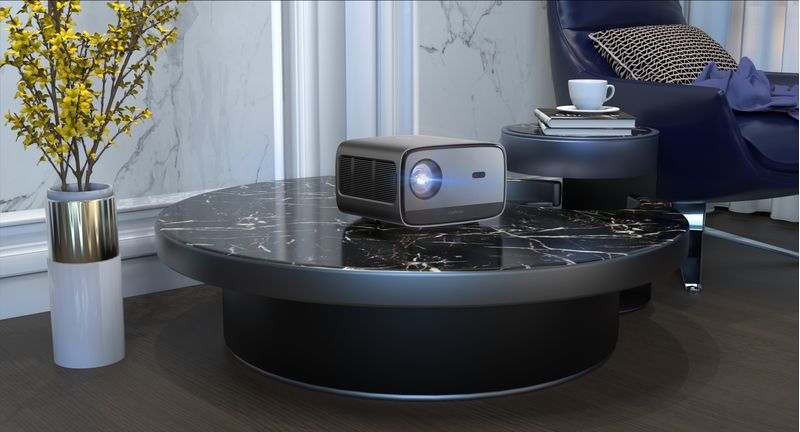 | Produto - bloco 5 descrição | Ajuste todos cantos da sua imagem e o foco automaticamente. O projetor conta com sensores de leitura quando é movimentado sempre fazendo a leitura sozinho na parede ou tela a ser projetado para deixar a imagem enquadrada e focada. |
