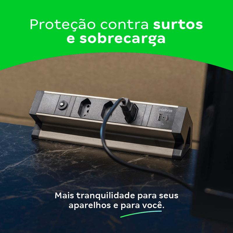Sua resistência a danos e desgaste garante durabilidade, mesmo em ambientes de alto uso, como escritórios e comércios. A proteção contra sobrecarga, curto-circuito e choques elétricos protege os dispositivos conectados, evitando danos e garantindo maior segurança.