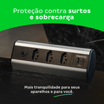 Sua resistência a danos e desgaste garante durabilidade, mesmo em ambientes de alto uso, como escritórios e comércios. A proteção contra sobrecarga, curto-circuito e choques elétricos protege os dispositivos conectados, evitando danos e garantindo maior segurança.